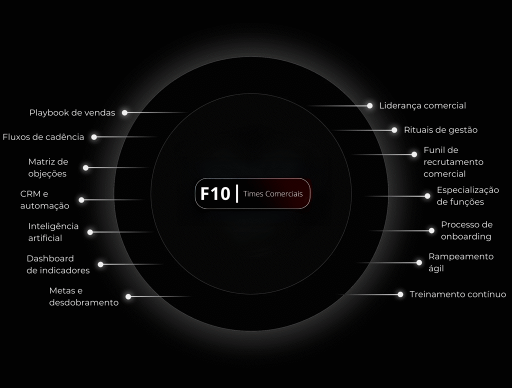 Somos a F10, especialistas em estruturar operações comerciais de ponta a ponta. Nosso foco é transformar vendas em um processo padronizado, escalável e previsível.